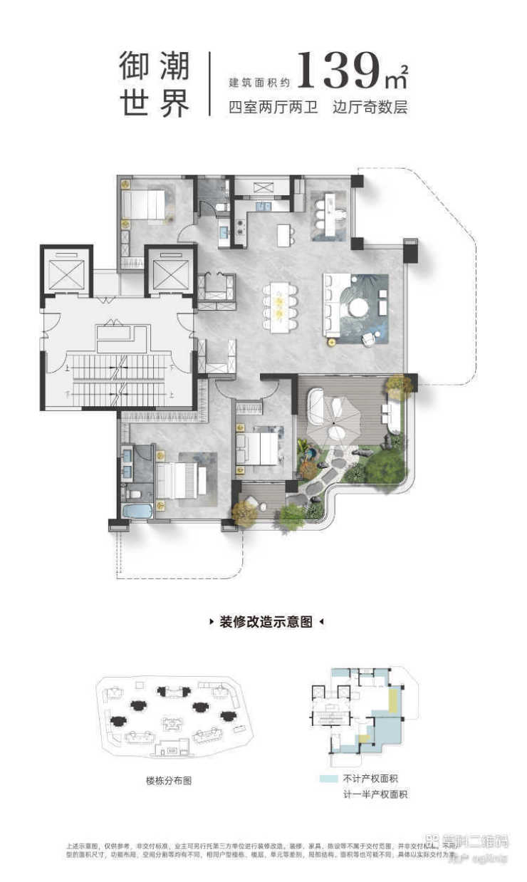 户型面积段:主力覆盖建面约110-140%极致得房率区间,以远超建筑面积的实际使用空间,实现“越级”居住体验。