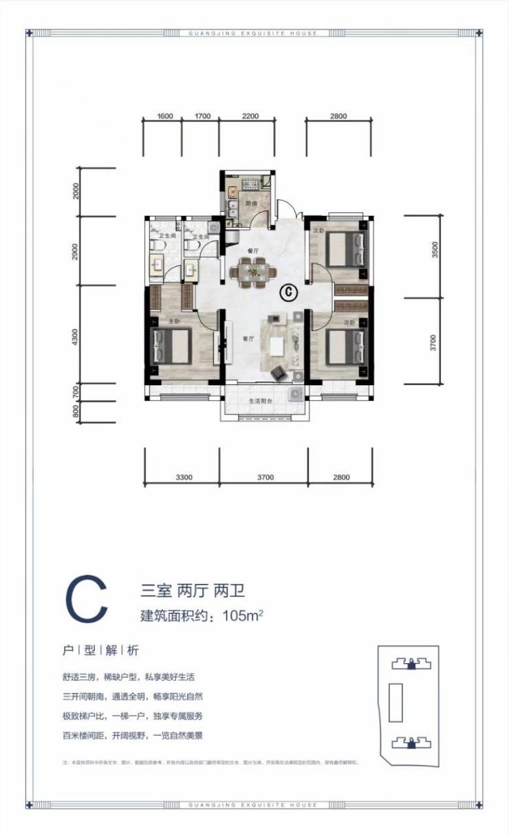 【冠景·上院】超百米楼间距,造就低密社区。一梯两户,一梯一户,极致梯户配比。精研人居需求,以空间哲学与宽广尺度匠筑约102m²-118m²舒适三房。