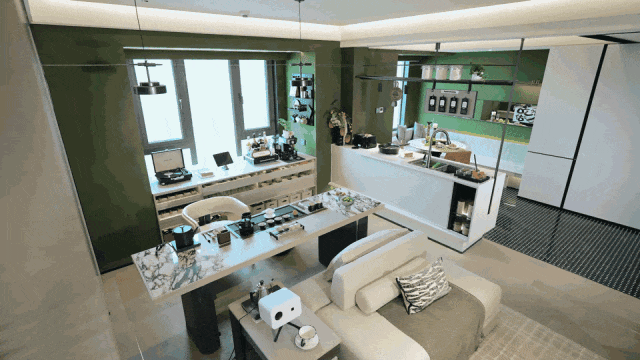比如入户洄游动线与餐厨洄游动线环绕互通,下班回家,放包换鞋-洗手清洁-做饭吃饭一气呵成,孩子和宠物都能在家里跑起来,更顺畅的空间布局,营造更高质感的家庭交互体验。