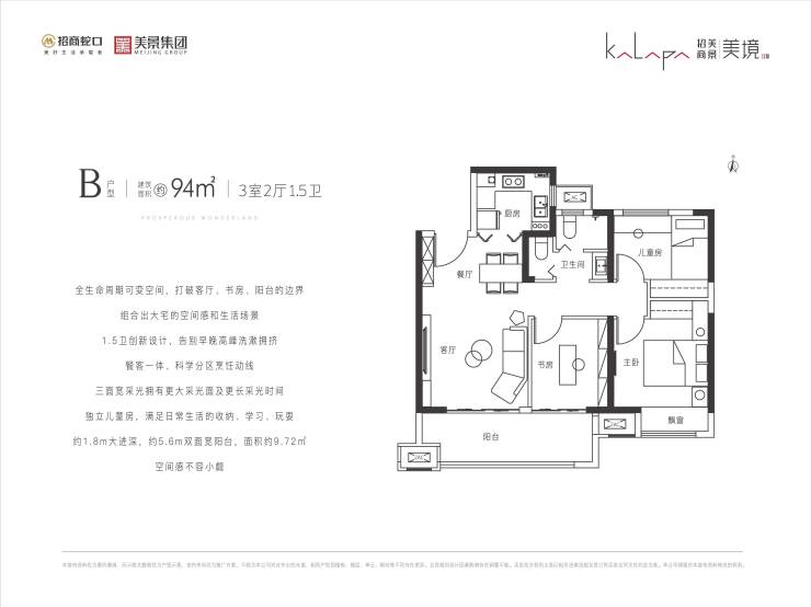 巨幕阳台:所有户型标配宽约5.5米起,进深1.8米双面宽观景大阳台;