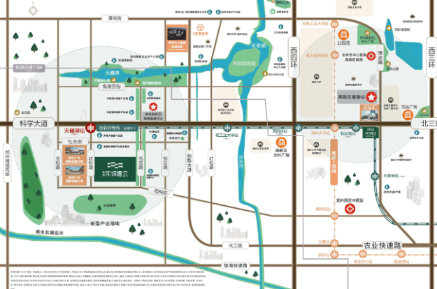 立体交通畅达全城:项目雄踞科学大道黄金中轴,快速连接西三环、西四环等城市环线,同时帷幄地铁8号线天健湖站(在建中),形成高效多元的出行网络。