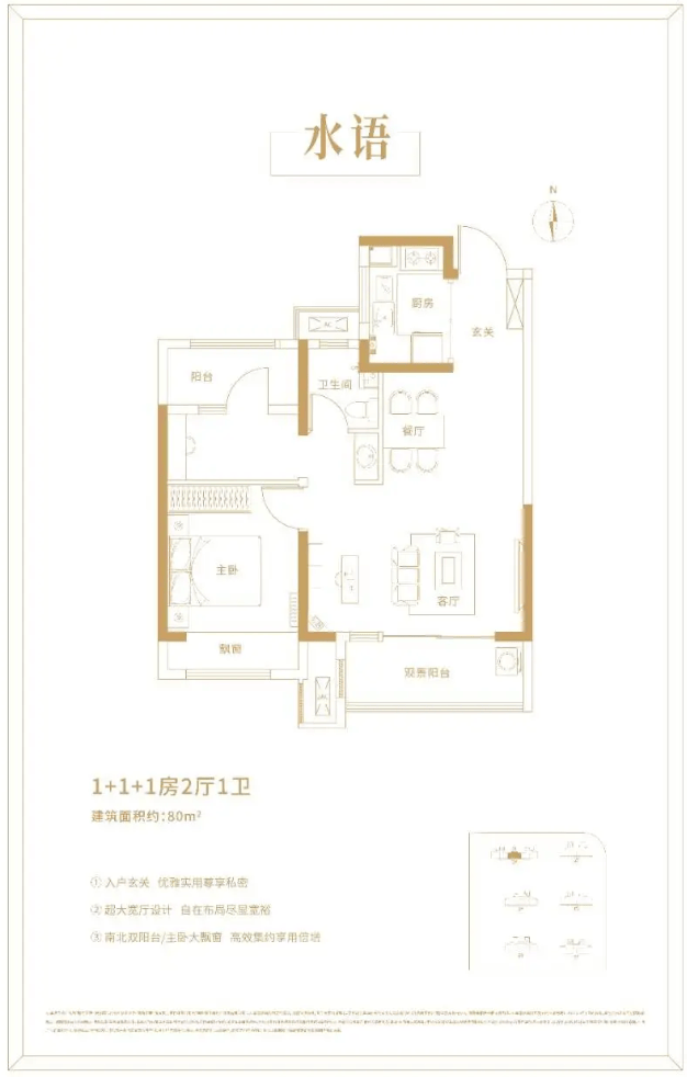 建面约80㎡ (1+1+1房) “水语”
