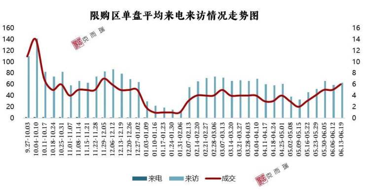 本周限购区监测约300个项目,平均来访约63组,成交约6套;