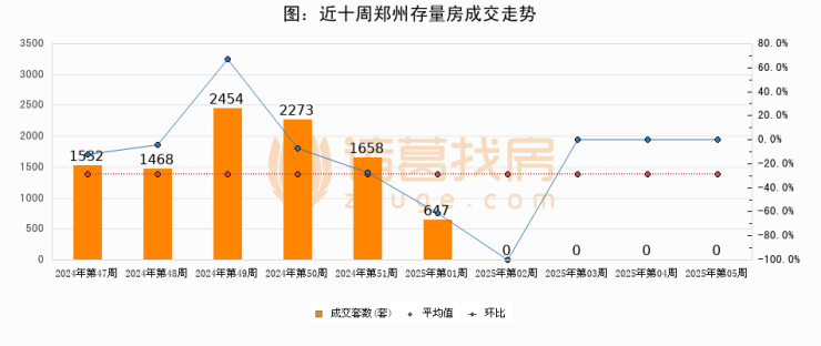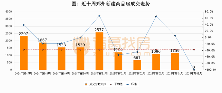 存量房方面,第05周郑州存量房成交0套,较上周持平。从近十周成交走势来看,周均成交套数为1003套,本周低于平均水平100%。