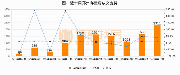 【郑州成交周报】第16周新房成交1217套,二手房2311套,涨价房源347套