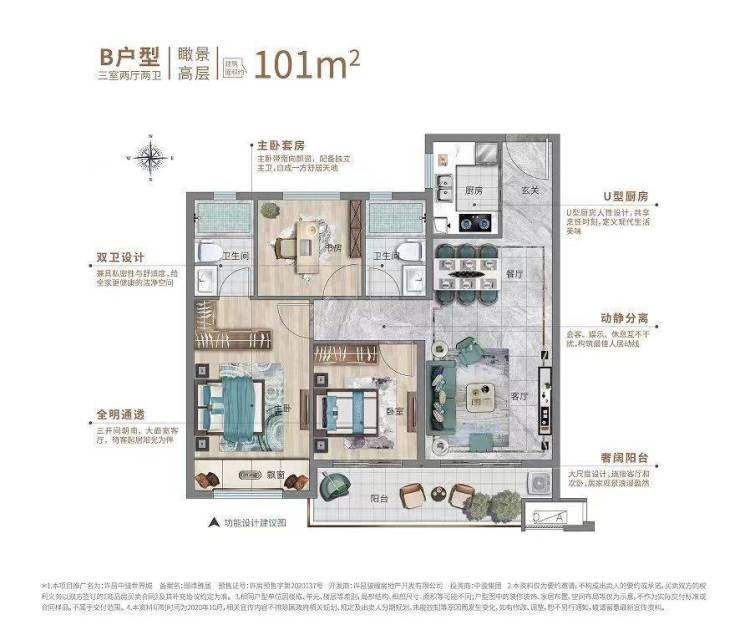 面积:101平-110平 三室两厅两卫