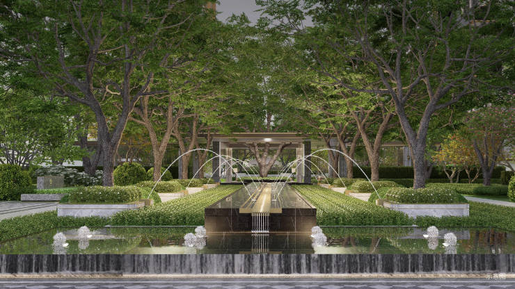 奢阔尺度门庭,星空穹顶、羽毛枫造景,精选海浪灰、古铜金等色彩,立新城市门面。