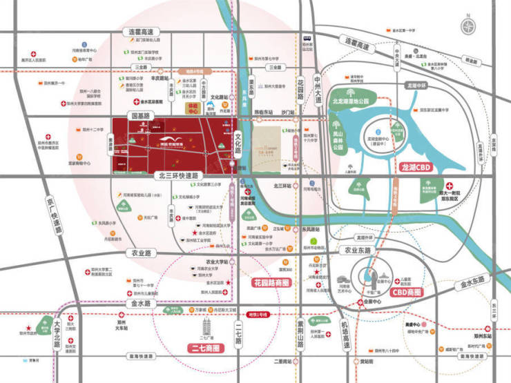 地理区位:立址主城核芯地带,文化路、北三环金水十字中轴。
