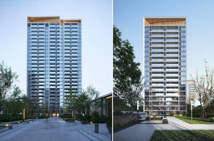 04 【精锐规划】约2.49低容积率,铝板+晶彩石+金属格栅IMAX流光晶幕建筑,5/13/15/18/26层高低错落排布,奢阔楼距低密舒适。