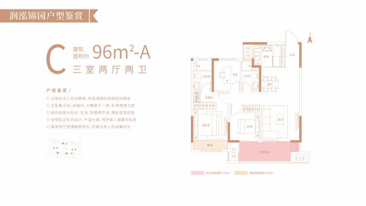 户型鉴赏:96㎡ 三室两厅两卫