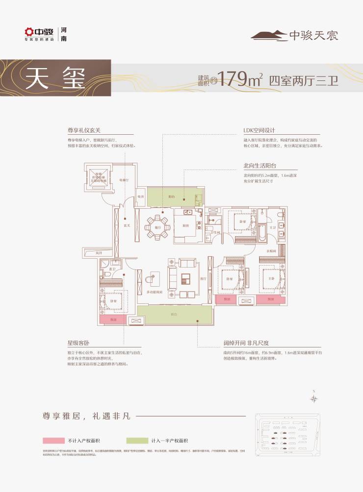 建筑面积约164-179㎡三卫宽境大平层