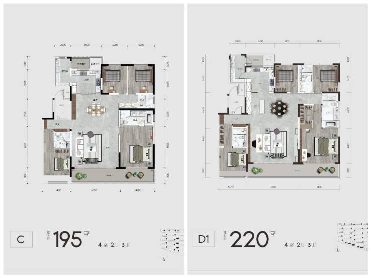 2. 建面约195㎡/220㎡奢居大平层 宽待层峰理想生活