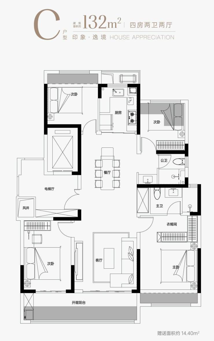 C户型「建筑面积约132㎡」