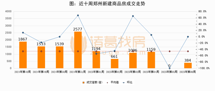 进入2025年第06周(02月03日-02月09日),郑州新建商品房成交384套,较上周持平