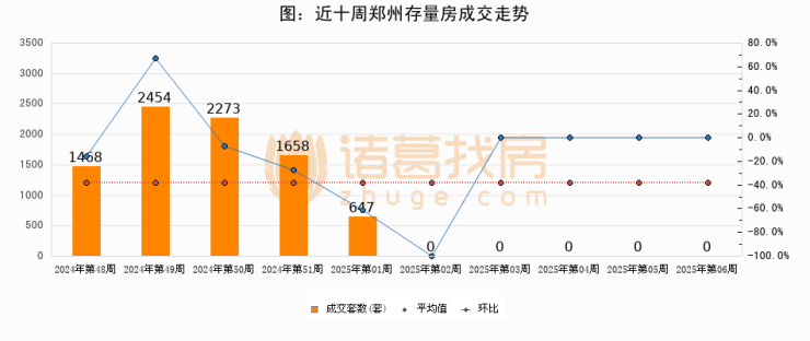 存量房方面,第06周郑州存量房成交0套,较上周持平。从近十周成交走势来看,周均成交套数为850套,本周低于平均水平100%。