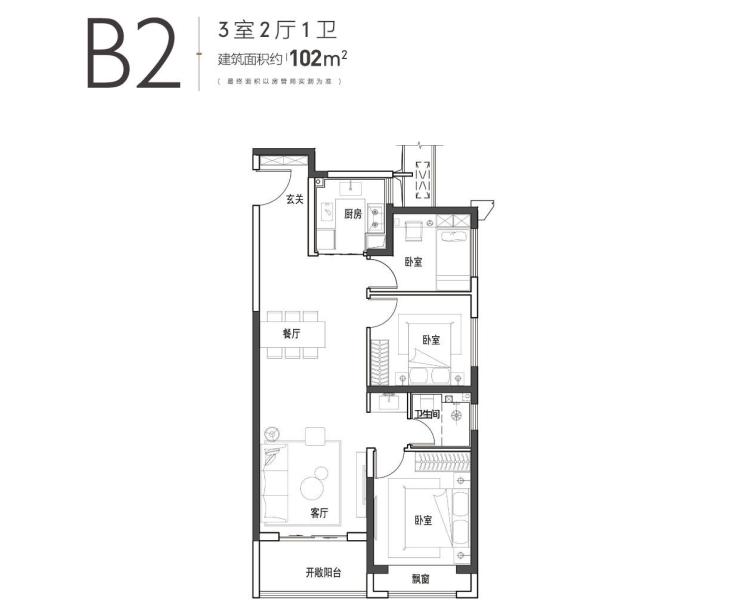 95/117/127㎡三房、142㎡四房,极致空间规划设计,舒适居住体验。
