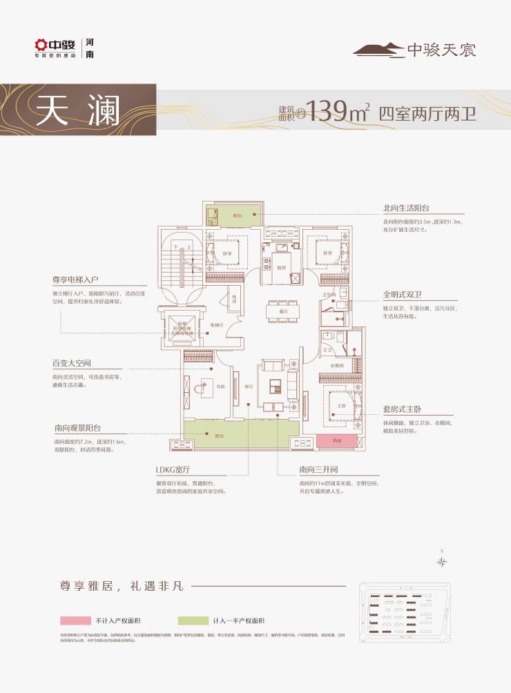 建筑面积约130-139㎡四叶草南北阳台