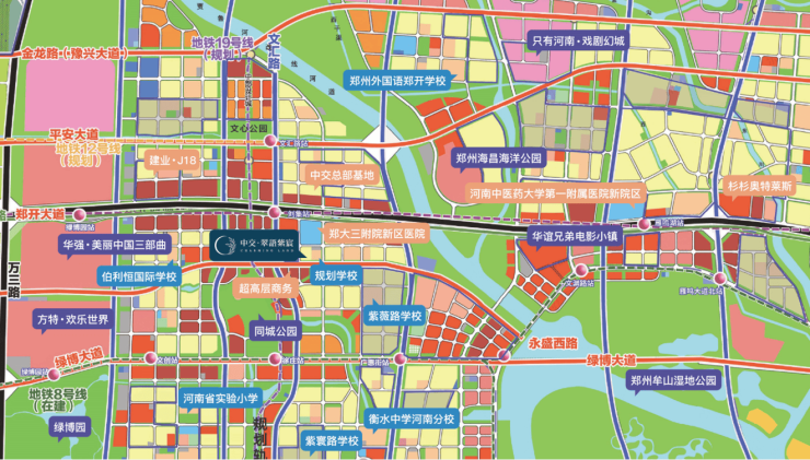 文旅配套:以“文化创意、时尚旅游、高端商务”为主导产业,定位“国际化、现代化时尚创意旅游文化新城”,中交世通大厦、建业电影小镇、只有河南、方特旅游世界、建业J18,杉杉奥特莱斯合力打造“东方奥兰多”。