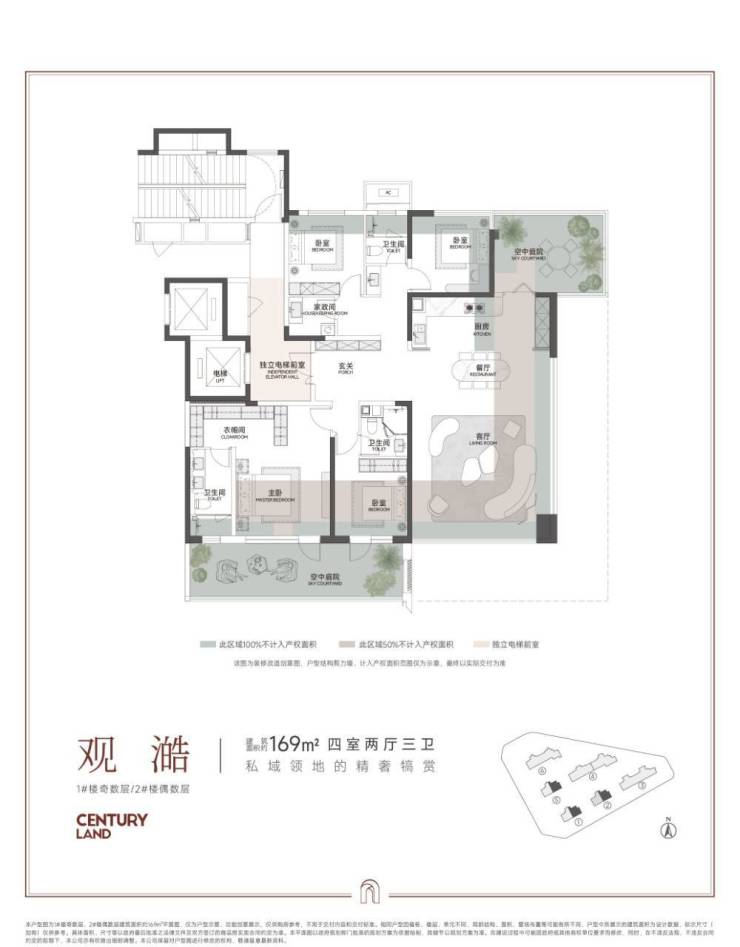 项目首推 1#、2#(总高 26 层,2T2/1T1 配置),主力户型为143㎡西边户、169㎡东边户,全系四室两厅三卫,精准匹配二胎家庭、三代同堂等改善需求: