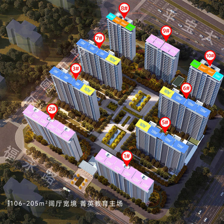 1#2# 总层16层(15+1) 面积为128平三室两厅两卫,其中2#5楼以上无房源,可选楼层2-4以及顶复