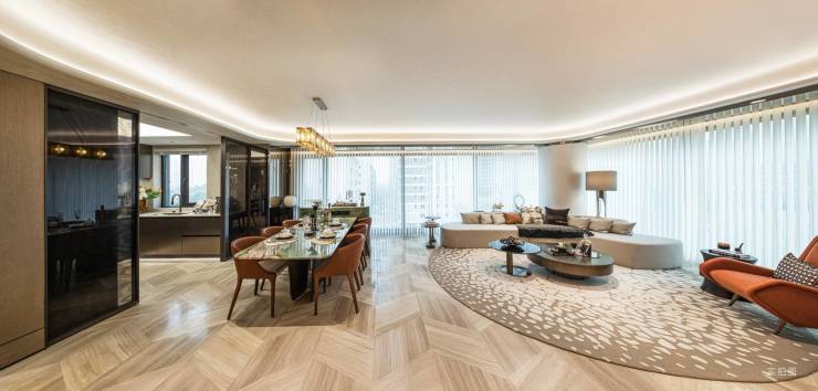 客餐厅一体超大空间搭配转角大玻璃