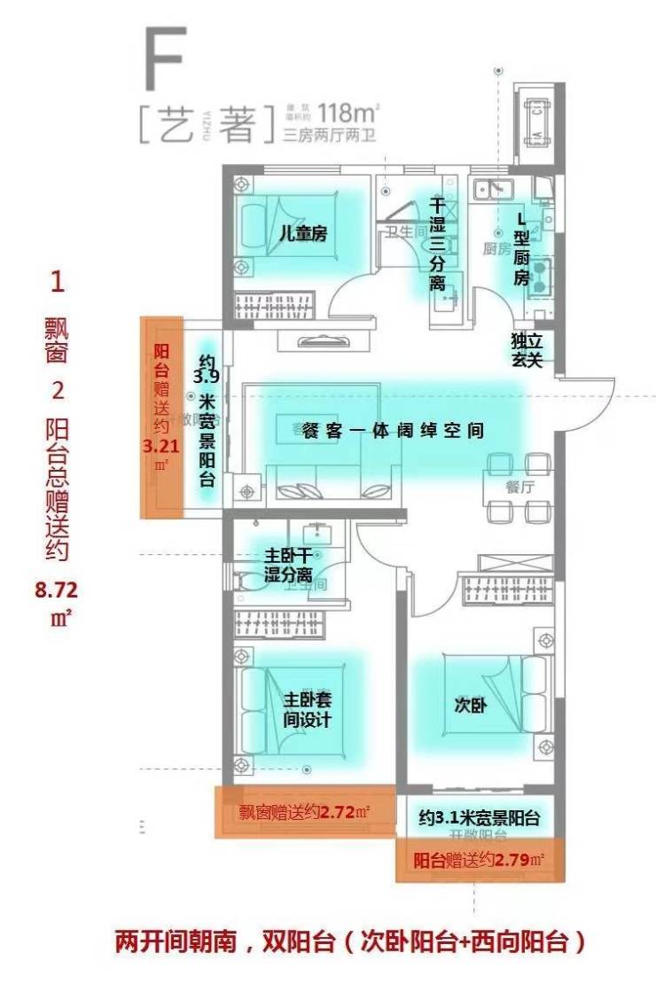 【F户型-艺著】——118㎡-三房两厅两卫
