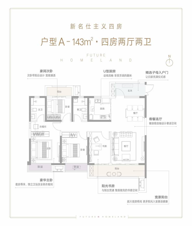 均为边户,采光性好,户型方正,南北通透,三开间朝南、连通式大阳台,北向安静书房,赠送面积大