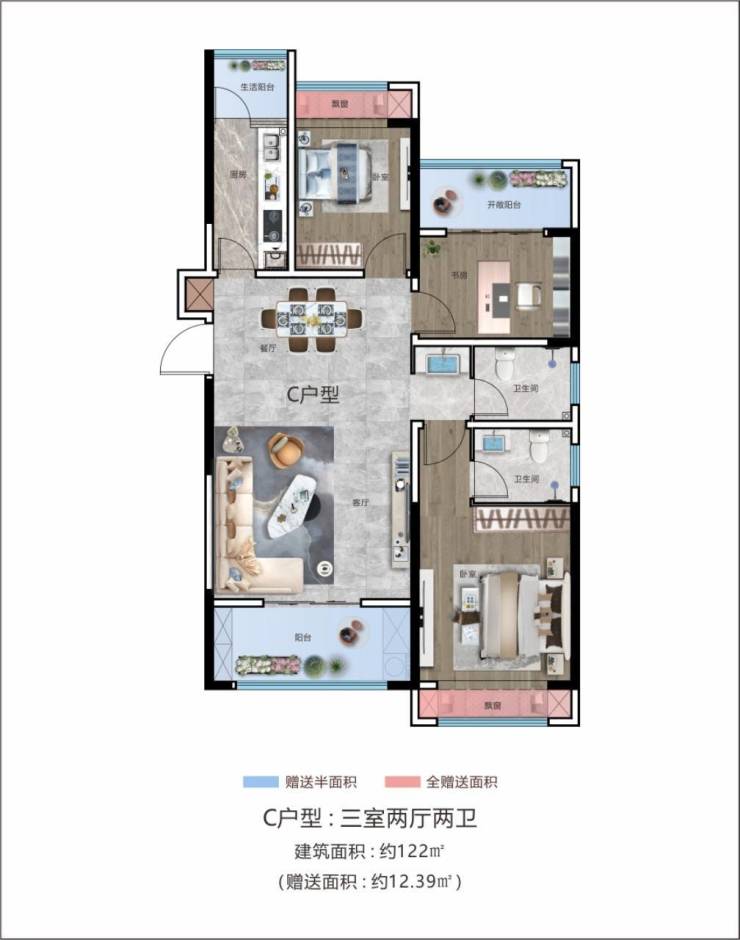 户型面积:约90平、112平、122平、131㎡两房、三房