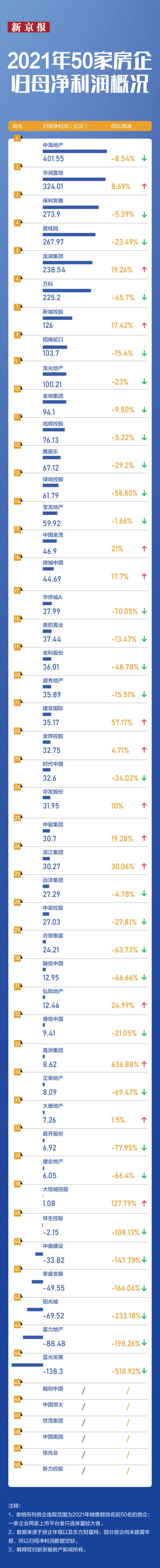 在2021年度销售额排名前50强房企中,有44家已披露财报,这些龙头房企的归母净利润表现如何?哪些房企经受住了考验?哪些房企陷入亏损?