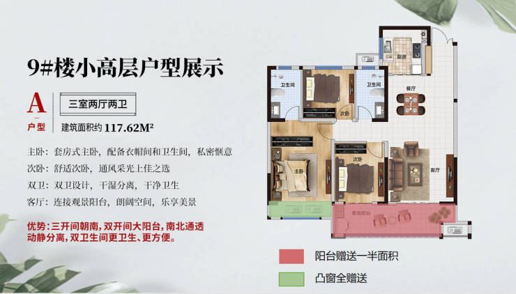 温馨三房,双联阳台,餐客一体,主卧套房