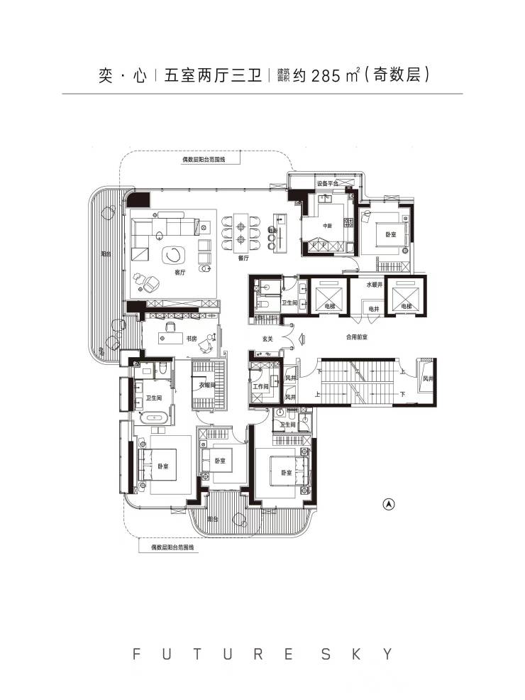 【主力户型】建筑面积约220-580㎡天幕大平层