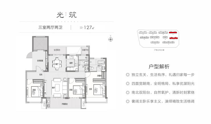 8号楼 :总层高18层,两梯两户,2个单元 127m²