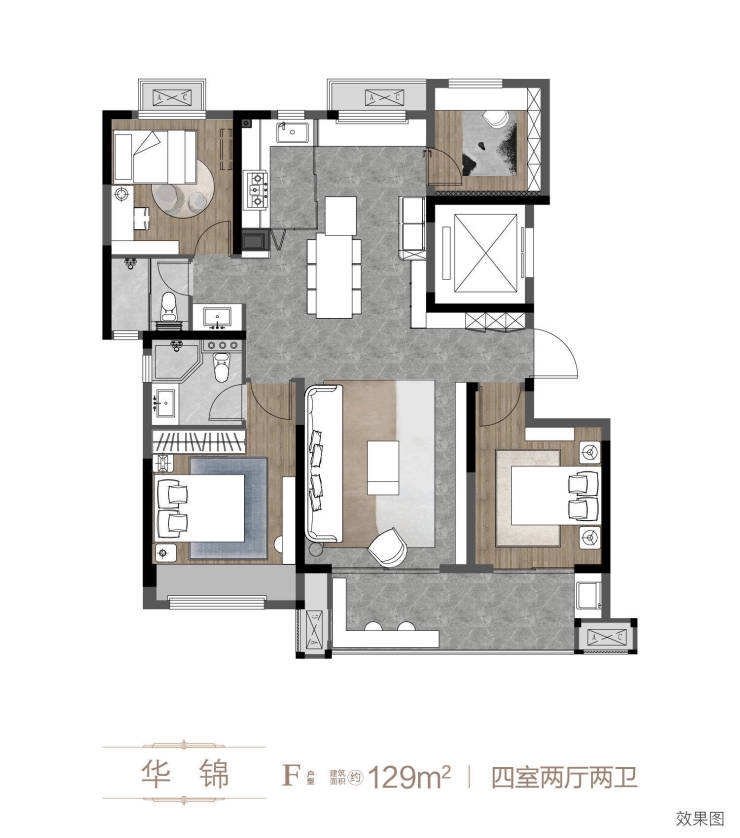 【建面约129㎡四室两厅两卫 “四叶草”明星户型】
