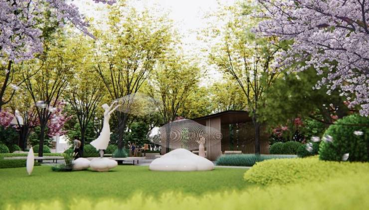 以一条轻氧漫步环串联八大庭院,形成“一环八院”的空间结构,营造一园栖居云梦里,八景游弋花林间的艺术居境。提供更多亲子、家庭、教育活动的生态花园,起承转合间实现自然、艺术、怡享的互生共融。