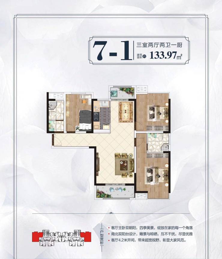 户型面积:90.64平,95.28平,102.41平,128.32平;130.68平,132.29平,133.97平