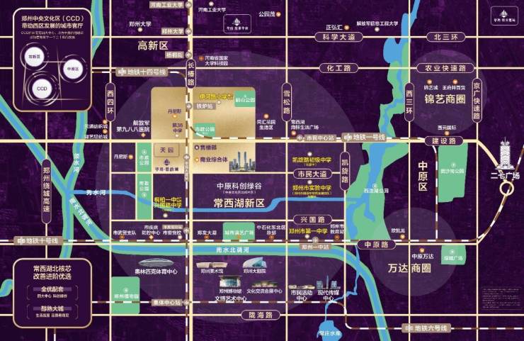 郑州奥林匹克中心、郑州市美术馆、郑州报业大厦、郑州市大剧院、郑州市博物馆、CCD地下商业街