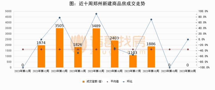 进入2023年第50周(12月04日-12月10日),郑州新建商品房成交0套,较上周持平
