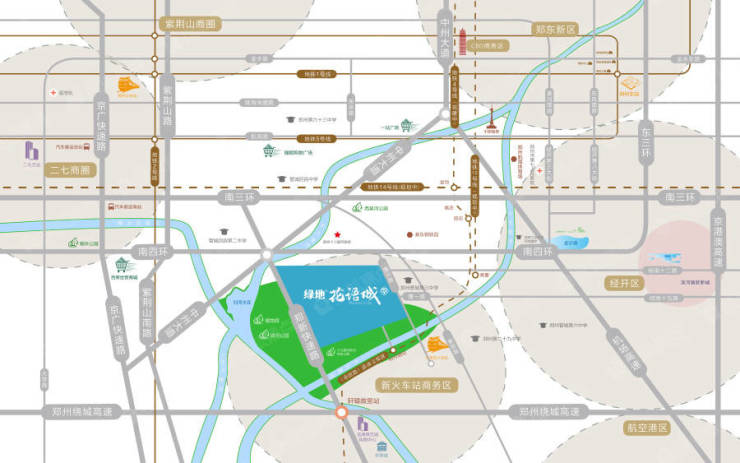 公交路线:项目紧邻城市南北中轴——中州大道,北上可快速抵达郑东CBD,向南可接驳绕城高速。南三环、南四环、郑新路三条快速路汇聚项目周边,立体交通网络铸就畅达出行体系,未来伴随规划中的小李庄火车站建成使用,区域交通将迎来更高级别升级蜕变。