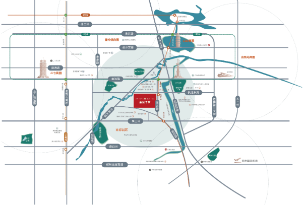 立体路网:被中州大道、南三环、机场高速、航海路等多条城市主干道环伺,自驾出行畅达全城。