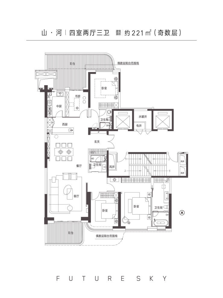 【主力户型】建筑面积约220-580㎡天幕大平层