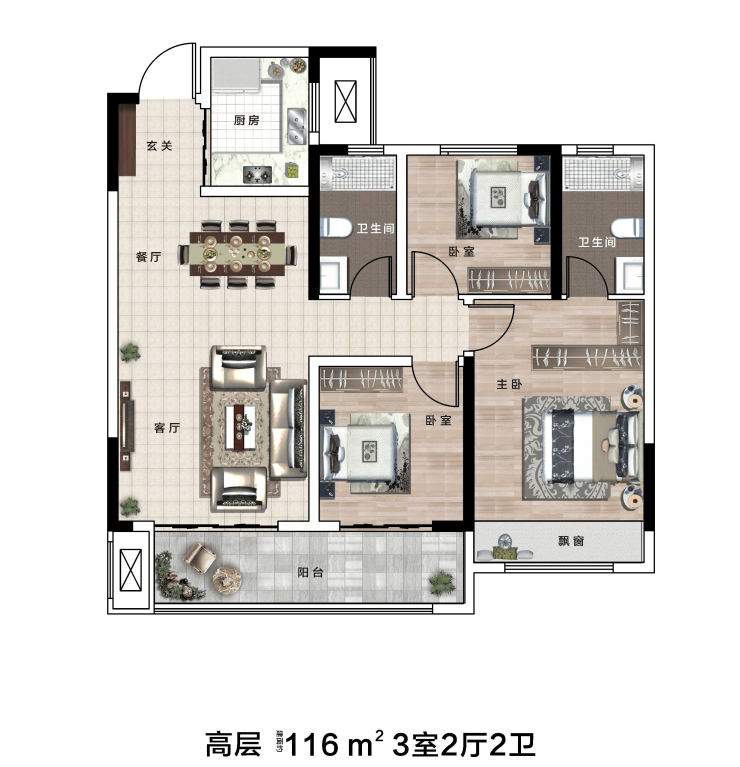 高层:建面约106㎡、约116㎡、126㎡;