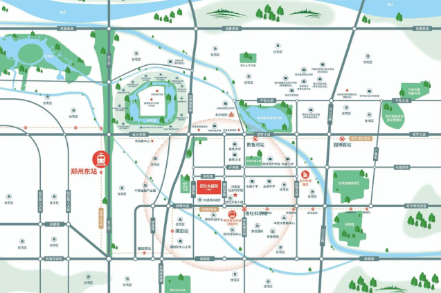 项目位于郑东新区东部,同时承接绿博生态文旅板块的辐射,坐享双区发展的双重红利。