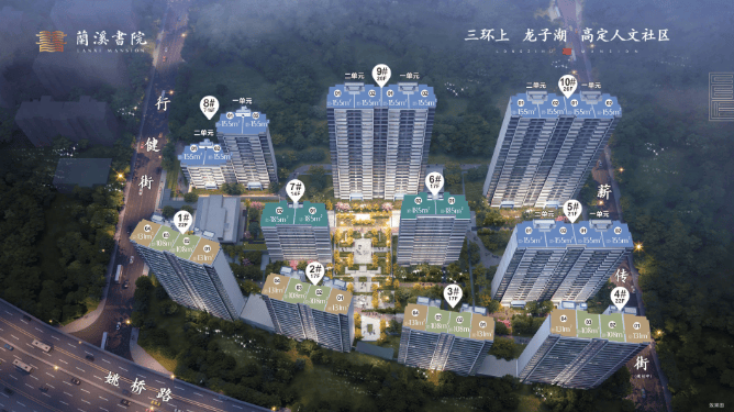 兰溪书院坐落于郑东新区龙子湖板块核芯,总建面约13.7万㎡,容积率约2.99,是一个规划为7-26层小高层及高层的低密社区。作为板块近6年来久违的改善新品,项目主打建面约108-185㎡的高定户型。项目已全部取证,所有楼栋封顶,并凭借与河南大学附属学校一路之隔(约430米) 的顶尖教育资源、大面积铝板立面及约1300㎡高定会所,成为衔接中原科技城发展势能的稀缺人文藏品。