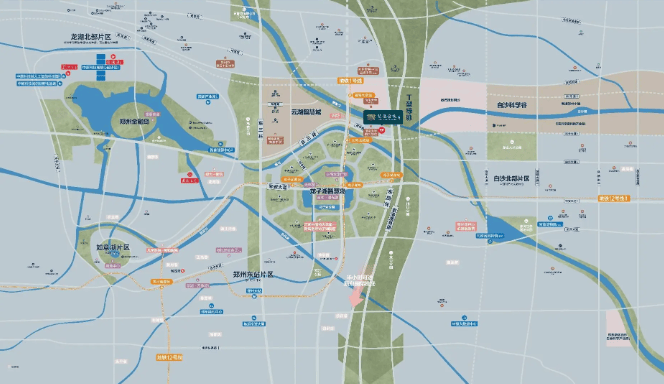 生态优渥:约2公里内拥揽 “一湖两河”(龙子湖、贾鲁河、魏河),是四环内水域面积排名第二的生态宜居地。