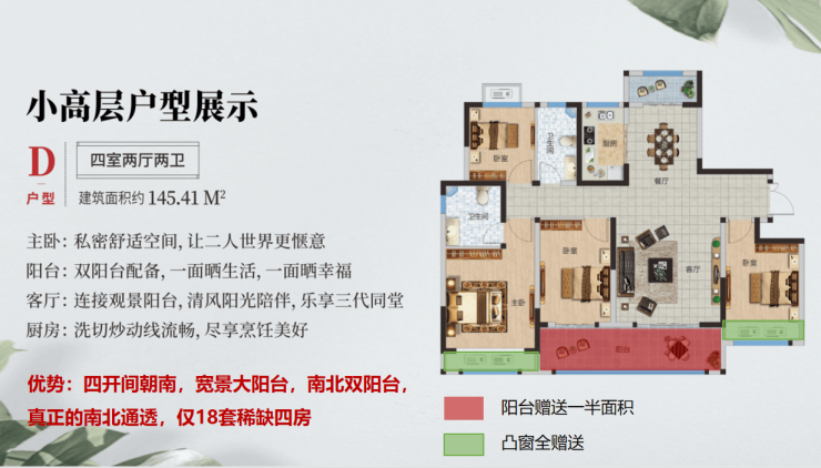 温馨三房,双联阳台,餐客一体,主卧套房