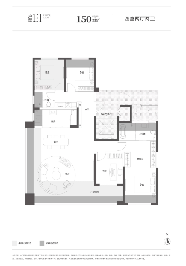 建面约180㎡ “舒云叠上”四室两厅三卫