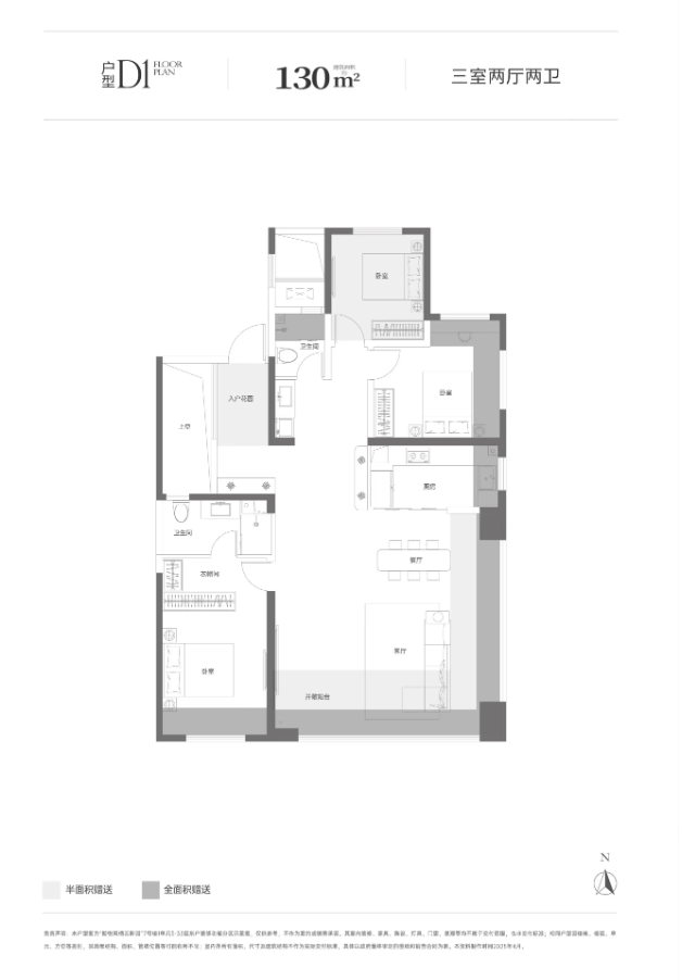 建面约130㎡ “云岫栖心”三室两厅两卫