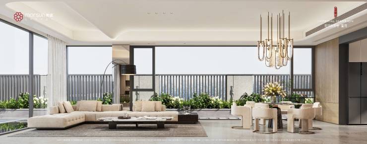 改造后户型三面采光,同时将阳台纳入室内,将端厅与阳台结合,实现更大的窗墙比,进而使得室内采光、景观视觉更大化。
