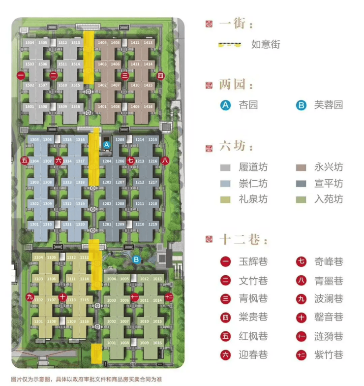 坊巷格局:项目传承盛唐规划礼序,打造 “一街两园六坊十二巷” ,以坊巷围合重构东方邻里温情,实现独门独户、有天有地的院落生活。