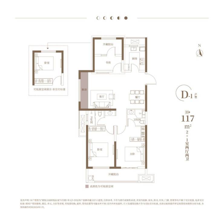 悦辰苑D1户型:建面约117㎡2+1房两厅两卫